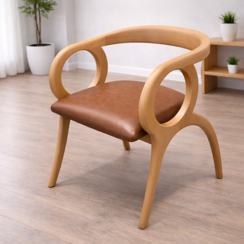 The elegant wooden finish and sculpted armrest design make this chair a perfect addition to modern dining rooms, luxury homes, cafés, restaurants, and lounge areas.