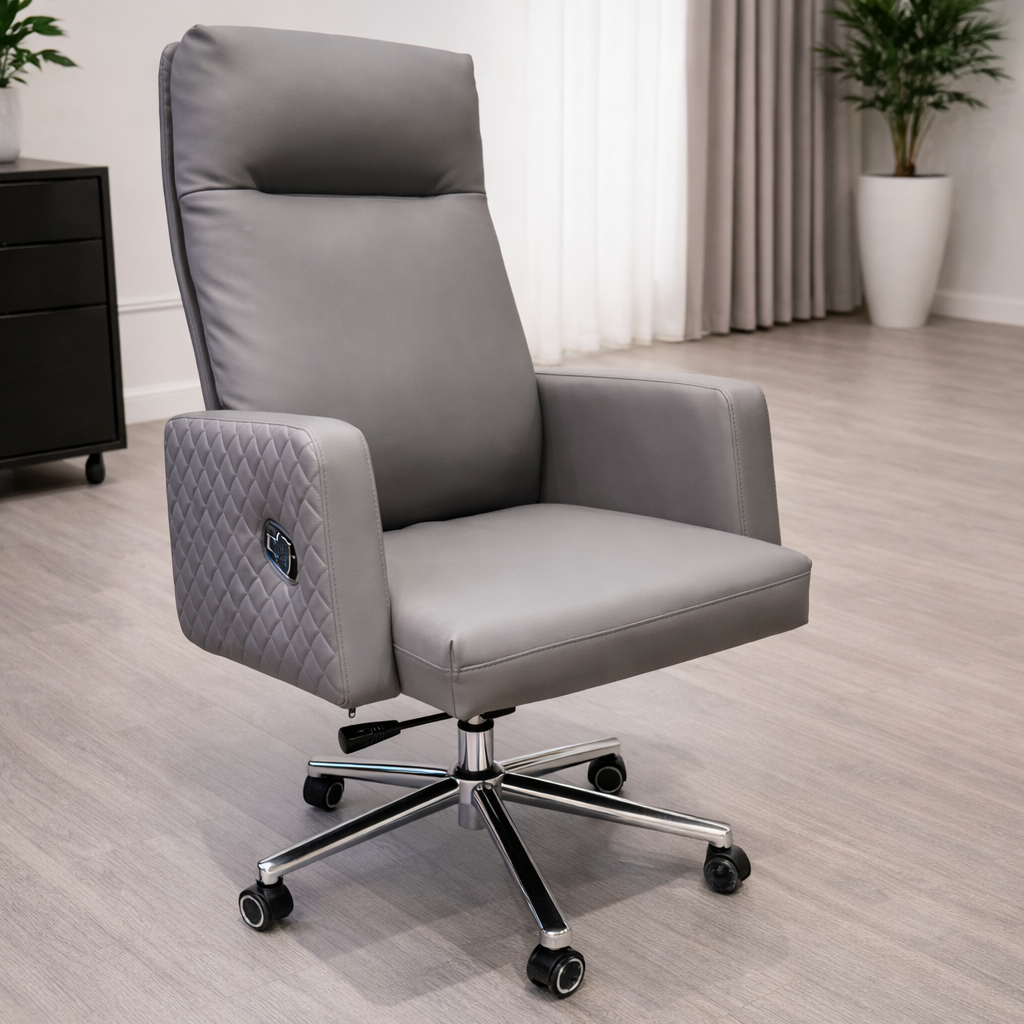 Luxury Grey Leatherette High Back Executive Office Chair with Quilted Armrests
