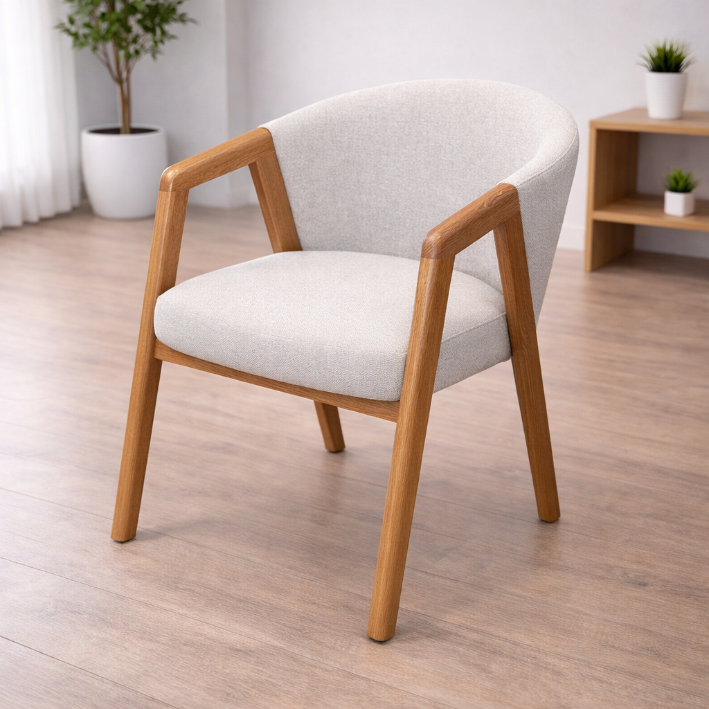 Experience superior comfort and modern style with this premium upholstered lounge armchair, carefully crafted to enhance both residential and commercial interiors. Built with a strong solid wood frame, the chair ensures excellent durability and long-lasting stability.
