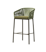The RC-60 features a modern design with a robust frame made from durable materials such as aluminum or steel. The chair is distinguished by its intricate rope weaving, which creates a visually appealing pattern. This design element not only enhances the chair’s contemporary look but also adds a unique texture that stands out. The contrast between the sleek metal frame and the woven rope makes the RC-60 a stylish addition to any setting.